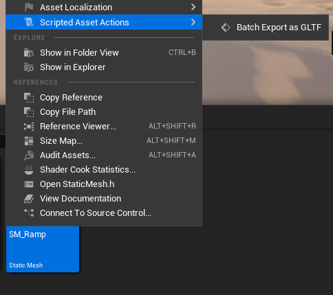 With the assets selected, right-click and select Scripted Asset Actions -> Batch Export as GLTF.