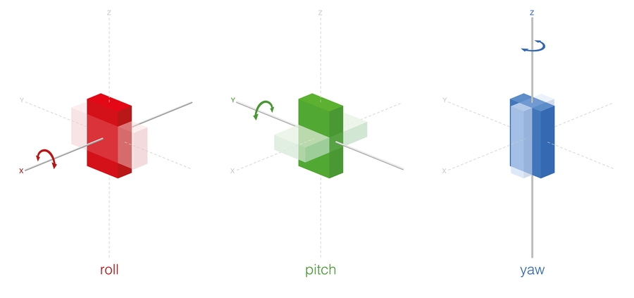 The Blue line, Z, translates to the Yaw added to the camera.