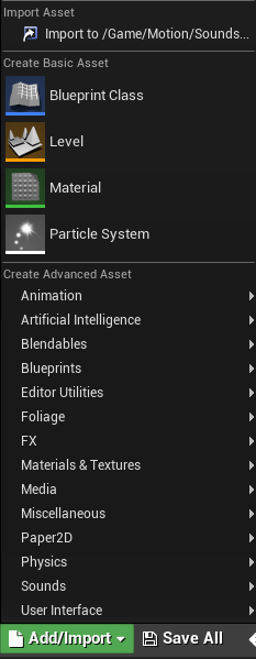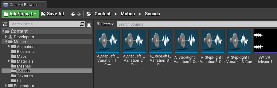 This section explains how to import your own sounds to Unreal Engine and how to add them to Motion.