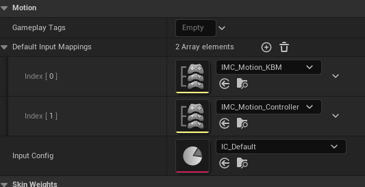 To assign the Input Action an input key, open your Input Mapping Context (Default is Plugins/MotionCore/Content/Motion/Blueprints/Input/IMC_Motion_KBM ) and add to the Mappings array.