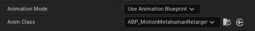 Right-click in the AnimGraph, then search for and create a Retarget Pose from Mesh node. Connect this node to the Output Pose node, as shown below.