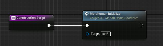 Once all contents of the Metahuman blueprint have been copied, create a call to `MetahumanInitialize` in your character's `Construction Script`, and a call to `MetahumanBeginPlay` at the `Begin Play` event node of your character blueprint.
