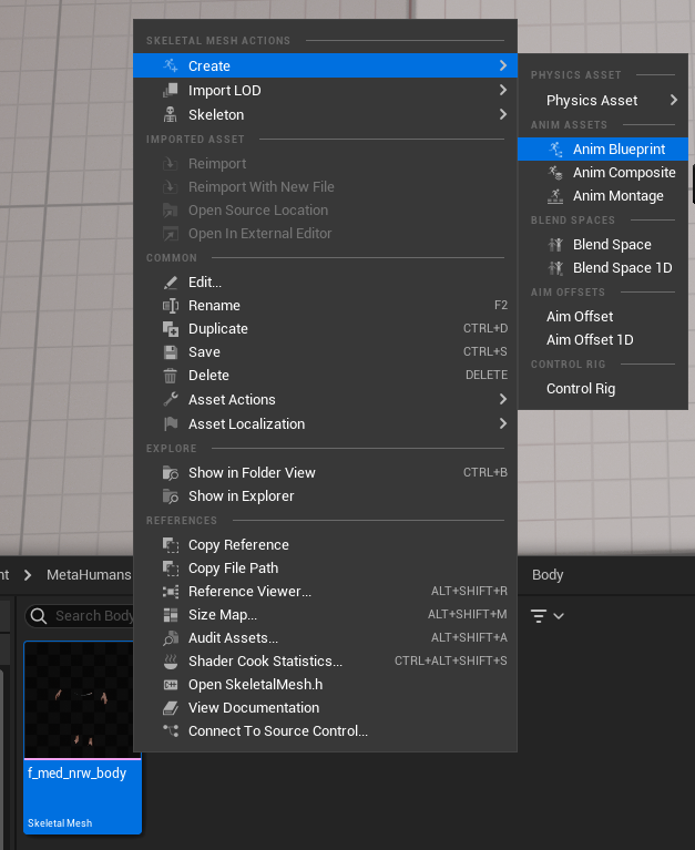 Right-click the mesh and select `Anim Blueprint`.